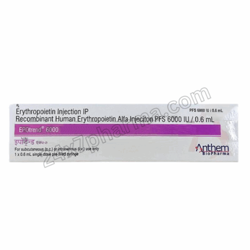 Epotrend 6000 IU Injection is a pharmaceutical product containing erythropoietin, a hormone responsible for stimulating red blood cell production in the body. It is commonly prescribed to treat anemia, particularly in individuals with chronic kidney disease, cancer patients undergoing chemotherapy, or individuals undergoing certain types of surgeries. Epotrend works by mimicking the body’s natural erythropoietin, encouraging the bone marrow to produce more red blood cells. By increasing red blood cell count, the injection helps alleviate the symptoms of anemia, such as fatigue, shortness of breath, and weakness.