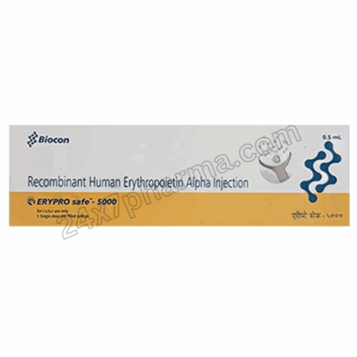 ERYPRO Safe 5000IU Injection belongs to the group of hormones used in the treatment of chronic anaemia and anaemic states seen in kidney disease, cancers, patients on chemotherapy, bone marrow disorders and in those due to undergo major bone surgery. Anaemia refers to low blood counts due to a deficiency of blood component haemoglobin, resulting in a reduced oxygen-carrying capacity of the blood.