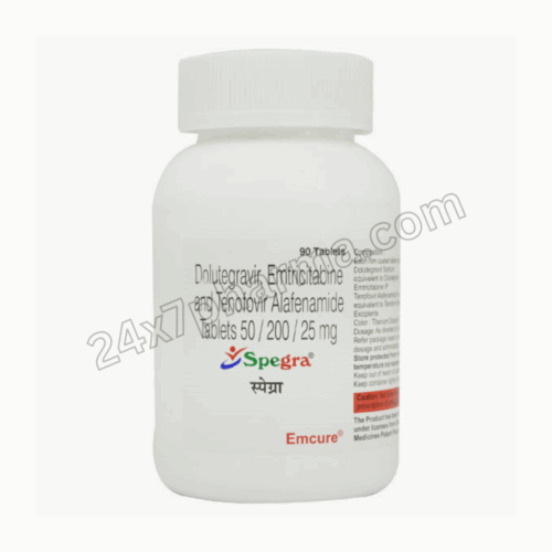 Spegra Tablet contains the active ingredient Spegra Tablet. It is a combination of antiretroviral medication. Dolutegravir belongs to a class of antiretroviral drugs called integrase strand transfer inhibitors (INSTIs). Emtricitabine belongs to the class of medication called nucleoside reverse transcriptase inhibitor (NRTI), and tenofovir alafenamide belongs to the class called nucleotide reverse transcriptase inhibitor (NtRTI). It is combined with other medicines to treat human immunodeficiency virus (HIV-1) infection in adults and adolescents 12 years of age who weigh at least 35kg.