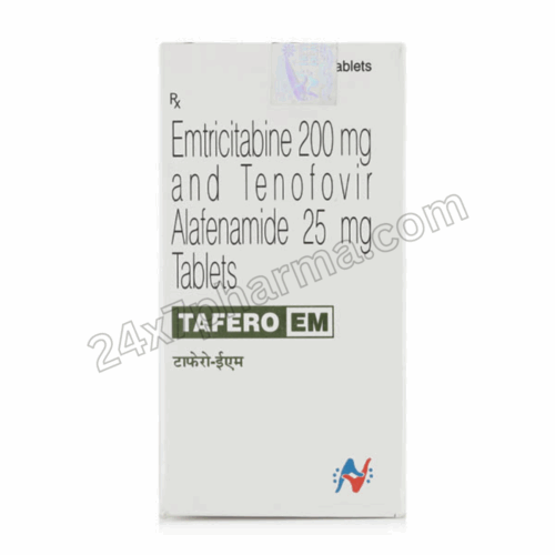 TAFERO EM Tablet contains the active ingredient Emtricitabine/ tenofovir alafenamide. It is a combination of antiretroviral medication. Emtricitabine belongs to the class of medication called nucleoside reverse transcriptase inhibitor (NRTI), and tenofovir alafenamide belongs to the class called nucleotide reverse transcriptase inhibitor (NtRTI). It is used in combination with other medicines to treat human immunodeficiency virus (HIV-1) infection in adults and adolescents 12 years of age and who weigh at least 35kg. They work by slowing the spread of HIV in the body.
