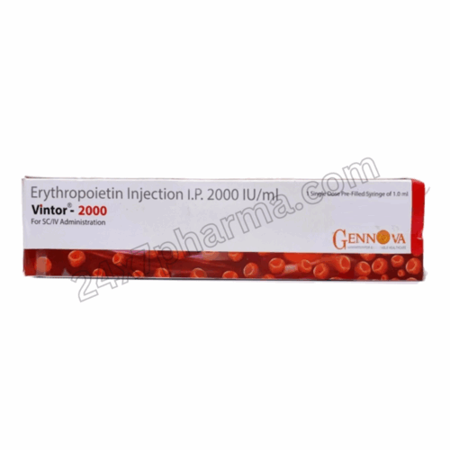The Vintor 2000 Injection contains erythropoietin, a synthetic form of a naturally occurring hormone in the body that stimulates red blood cell production. It’s primarily used for treating anemia caused by chronic kidney disease or certain medical treatments like chemotherapy.